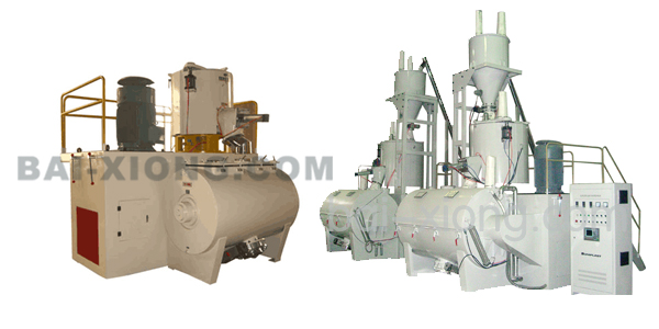 Mainly composed of high speed hot mixer,cold mixer,and electric control components etc.It is widely used in drying mixing blending and cooling the powder,liquid,granule of plsatics,rubber,dyestuffs,foodstuffs,chemicals, CaCo3 etc.